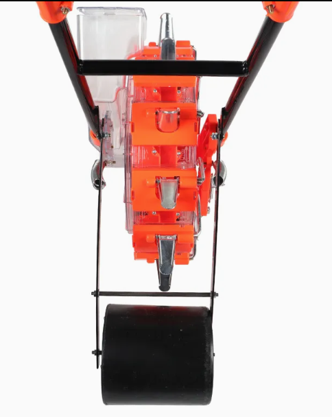 Siewnik zbożowy z ręcznym pchaniem działa poprzez koordynację obrotu bębna i mechanicznego wyładunku, zapewniając wydajny i uporządkowany siew. Najpierw rolnicy wsypują kukurydzę, fasolę lub orzeszki ziemne do skrzyni nasiennej siewnika ręcznego z bębnem pchającym, a nasiona wsuwają się do wbudowanych rowków bębna. Podczas pchania siewnika ręcznego z bębnem pchającym do przodu bęben obraca się wraz z kołami, a każdy rowek mieści stałą liczbę nasion. Gdy bęben się obraca, nasiona są płynnie uwalniane przez otwór wylotowy do wstępnie otwartej bruzdy. Zaraz potem wał ugniatający dociska glebę nad nasionami, kończąc siew. Zasada ta zapewnia, że siewnik zbożowy z ręcznym pchaniem utrzymuje stałe odstępy między nasionami, unikając przepełnienia i poprawiając przestrzeń wzrostu upraw.
