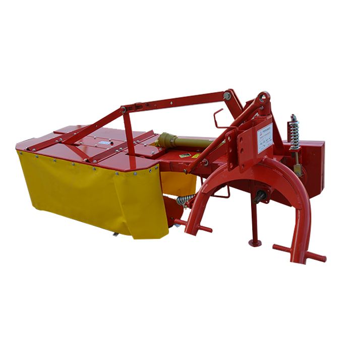 Kosiarka siana montowana na ciągniku może szybko wycinać trawę i słomkę za pomocą wielu zestawów szybkich obrotowych ostrzy i może skutecznie zbierać różne trawy, takie jak lucerna, życzenie, trawa owsiana i uprawy słomy o wysokiej wydajności, takie jak trzciny. Moc jest przesyłana do skrzyni biegów przez koło pasowe ciągnika, a następnie przesyła na każde ostrze przez zestaw przekładni pręta tnącego. Ostrze tworzy silną siłę tnącą pod działaniem szybkiej obrotowej siły odśrodkowej, która może szybko odciąć łodygi trawy i słomę.